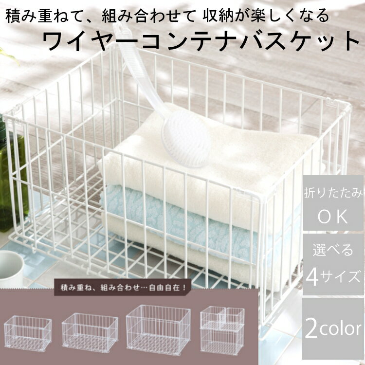 収納 バスケット ワイヤーコンテナ WCO-M ホワイト・シルバー アイリスオーヤマ 保存 洗面所 浴室 洗濯物 リビング 積み重ね 洗濯 脱衣所 洗濯機 衣類 便利 かご 洗面所 洗面台 サニタリー バスタオル タオル 洗濯物 片付け
