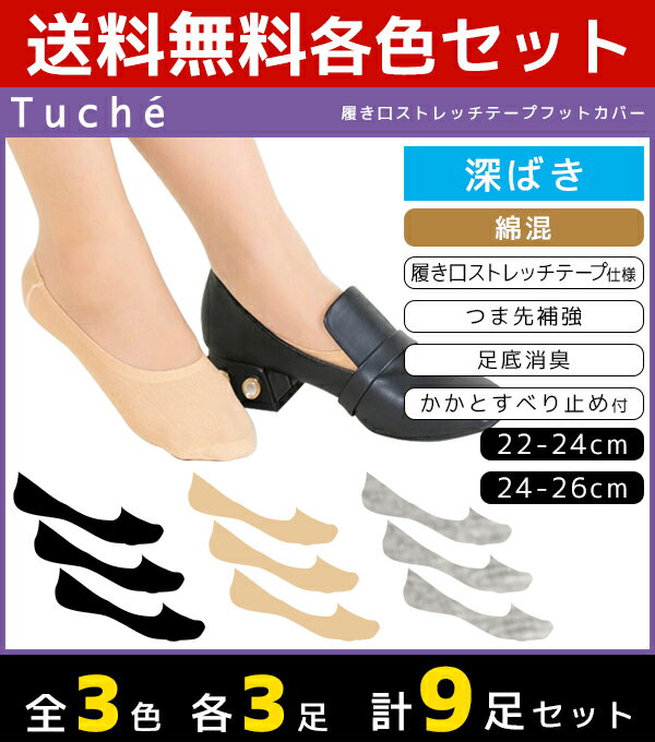 3色3枚ずつ 送料無料9枚セット Tuche トゥシェ レディースソックス フットカバー 深履き グンゼ GUNZE くつした くつ下 靴下 まとめ買い | レディース 黒 ブラック ベージュ 可愛い かわいい 女性用 パンプス おしゃれ 婦人 ソックス オフィス 婦人靴下 パンプスイン